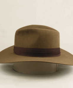 Inspired by a classic adventure character, this hat is a stylish replica of a timeless design. Made from whiskey wool felt, it features a 5 1/2″ open crown with a center crease and medium pinches for a sophisticated look. The dark brown hand-wrapped puggaree band adds an elegant touch, while the 4″ safari-style brim offers both shade and flair. Perfect for those who appreciate vintage-inspired headwear.