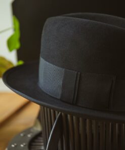 All-Season Felt Hat, This is a tall teardrop crown with a 8 cm / 3.15″ bound flat brim.