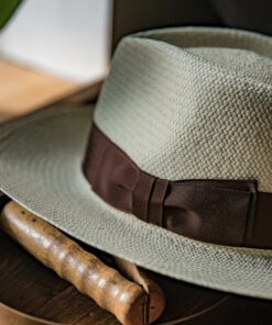 It features a 38 mm modern grosgrain hatband with a double back bow.