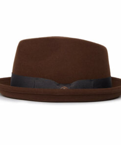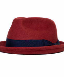 Our Classic Pork Pie Fedora Hat, adorned with a solid color bow hat band for an added touch of sophistication.