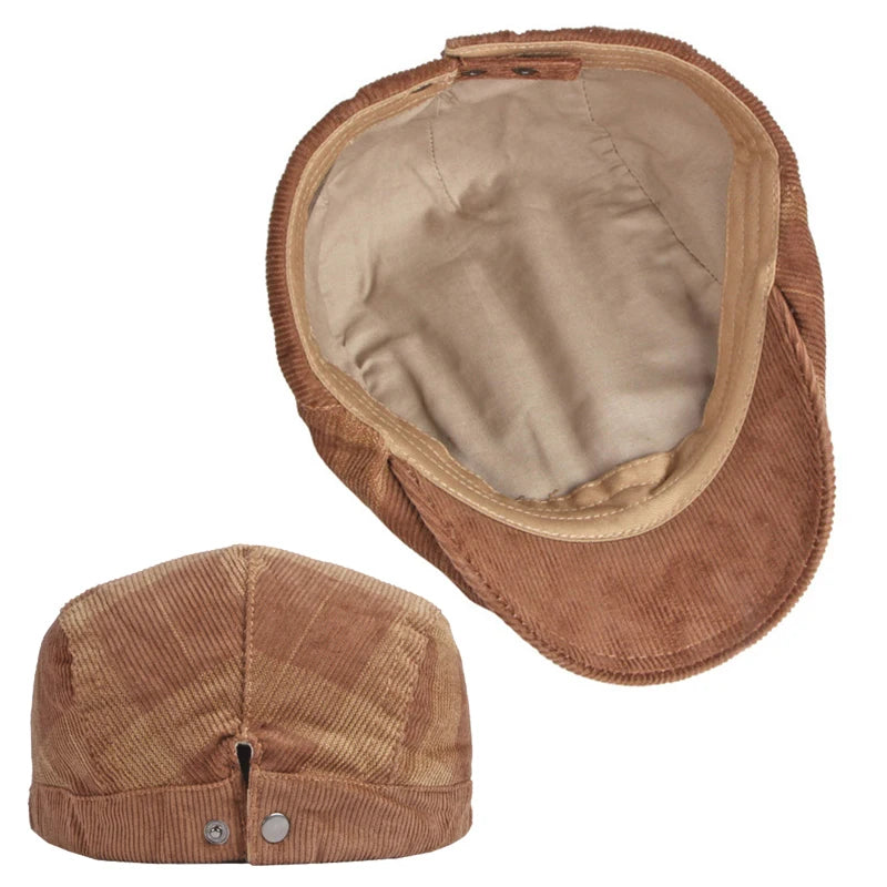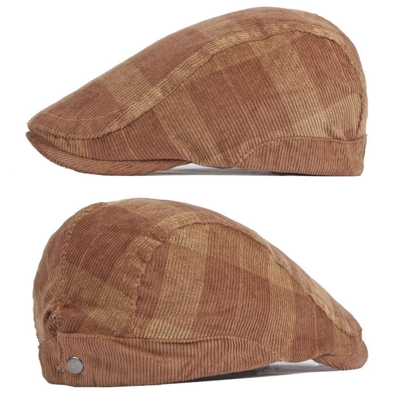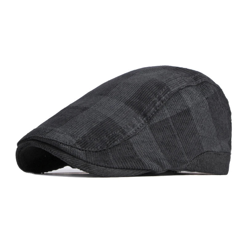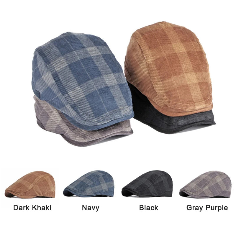 Corduroy Plaid Flat Cap