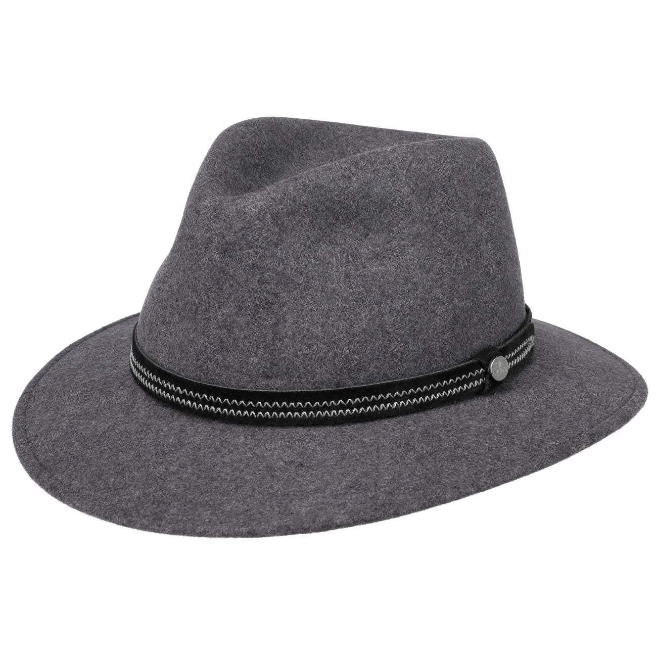 The strikingly decorated trim band of this Western hat immediately catches everyone’s eye. The fine vertical lines and the slightly protruding bow set an elegant accent and make the traveller hat a fashionable going-out hat for the city. Of course, the comfortable head covering made of 100% wool felt can also be worn while gardening or relaxing in the hammock.