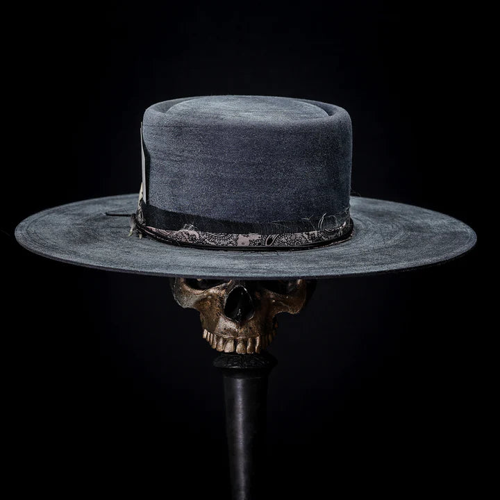 The Old West Cowboy Hat is constructed of quality fur felt and features a sloped crease crown, interior quality sweatband.