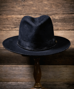 Clean, bold, and unapologetically Western — this 100X Beaver Teardrop Hat commands attention with its heavy 4″ brim and sharp silhouette. Crafted from the finest materials and wrapped in custom embossed black leather with heavily textured black fabric, this hat delivers a raw, rebellious edge worthy of any true cowboy. Whether you’re hitting the trail or the town, this piece was made to make a statement.