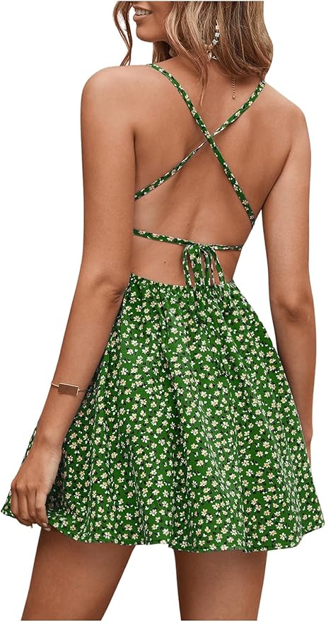 Women’s Summer Ditsy Floral Backless Dress HI34